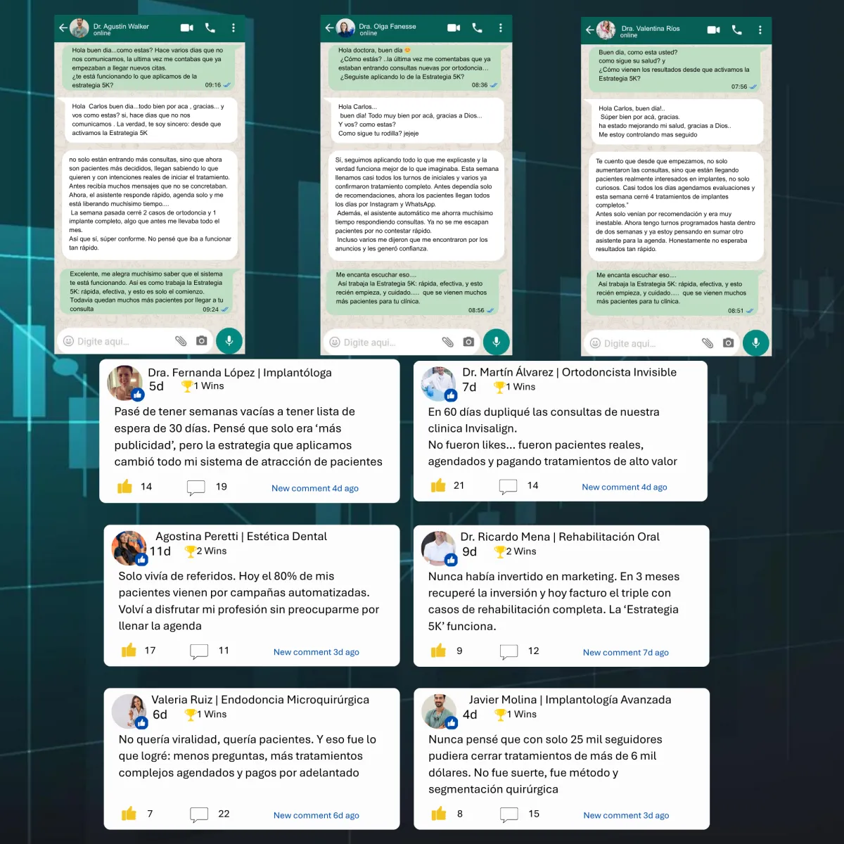 Con el Método 5K, cada parte del proceso —desde la atracción de pacientes, la respuesta inmediata con IA, hasta el cierre de ventas y el seguimiento— está optimizada para que tu clínica genere al menos 5.000 dólares adicionales en tratamientos de alto valor, de forma constante y medible.